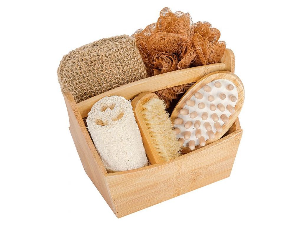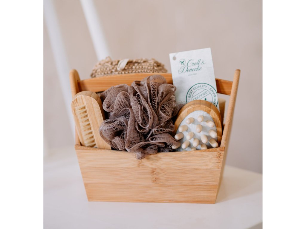 Exklusivní dárková sada pomůcek pro péči o tělo v bambusovém košíku s rukojetí. Nechejte své tělo hýčkat a dopřejte mu komfortní péči a relaxaci. Tento krásný dárek nadchne každého milovníka lázní a koupelí.