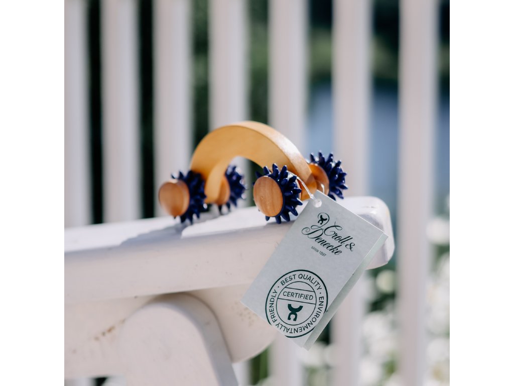 Dřevěná ruční masážní pomůcka pro uvolnění a masáž celého těla. Výstupky stimulují svaly efektivním způsobem. Masážní pomůcka zlepšuje krevní a lymfatický oběh, stimuluje metabolismus.