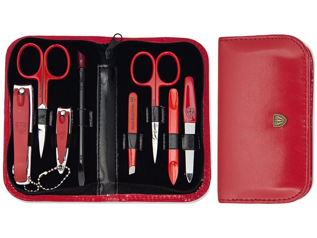 Krásná červená sada na manikúru od německého výrobce Kellermann. Nástroje v červeném designu elegantně ladí s barvou pouzdra. Luxusní vzhled dělá z této sady hodnotný dárek, který jistě potěší každou ženu.