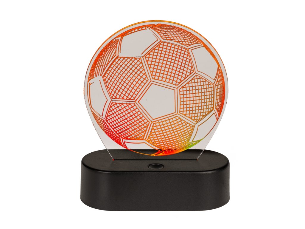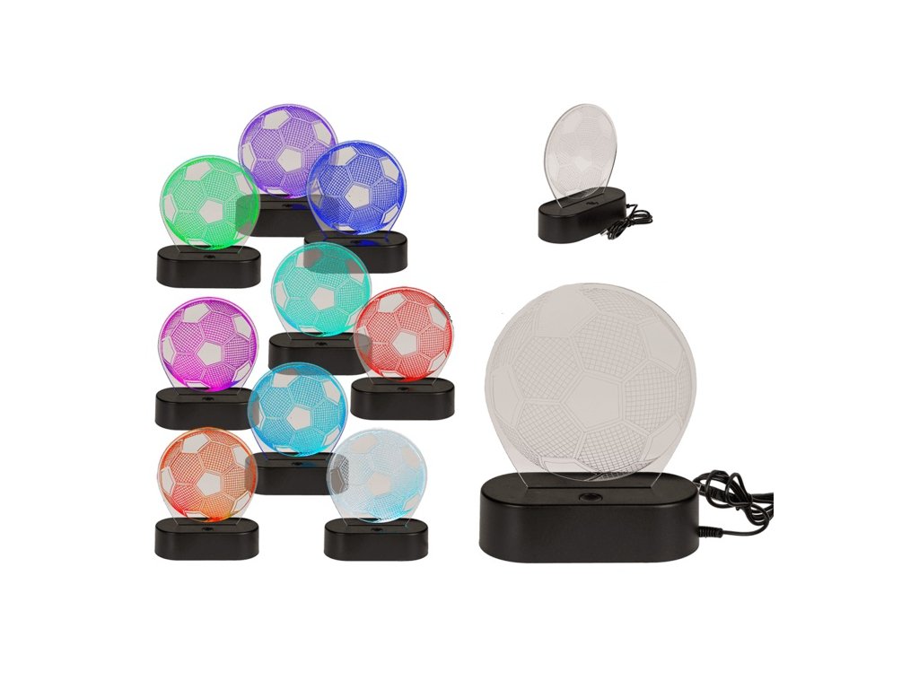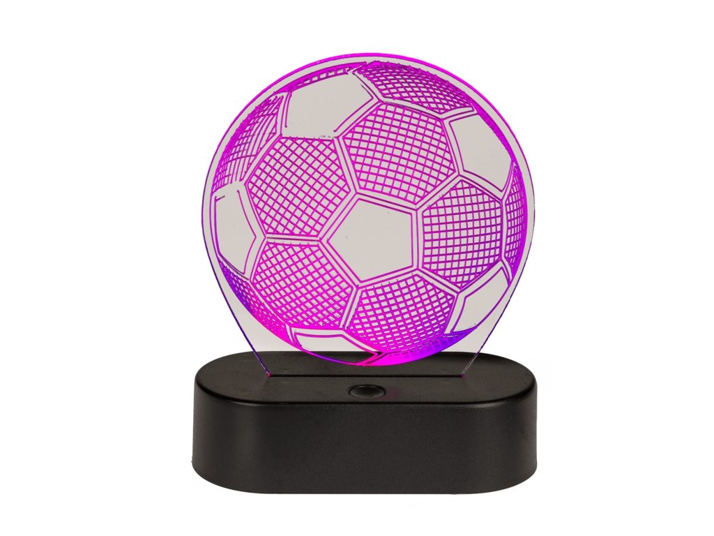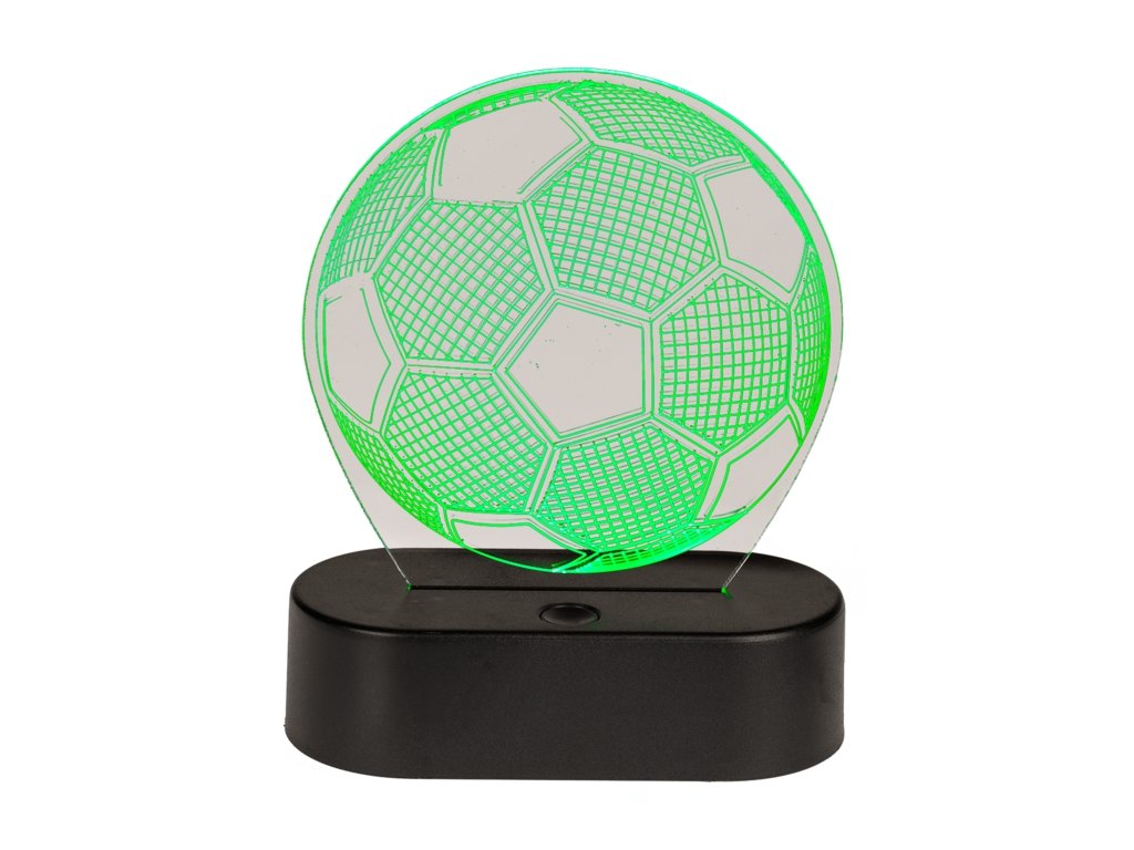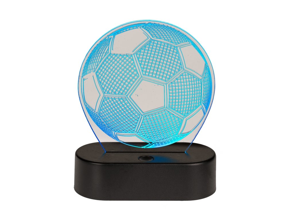 Lampička s designem fotbalového míče postupně mění barvy, lze vybrat i jedna konkrétní barva. Stiskem tlačítka se přepíná 7 barev a 1 režim je automatický, kdy se barvy postupně prolínají.