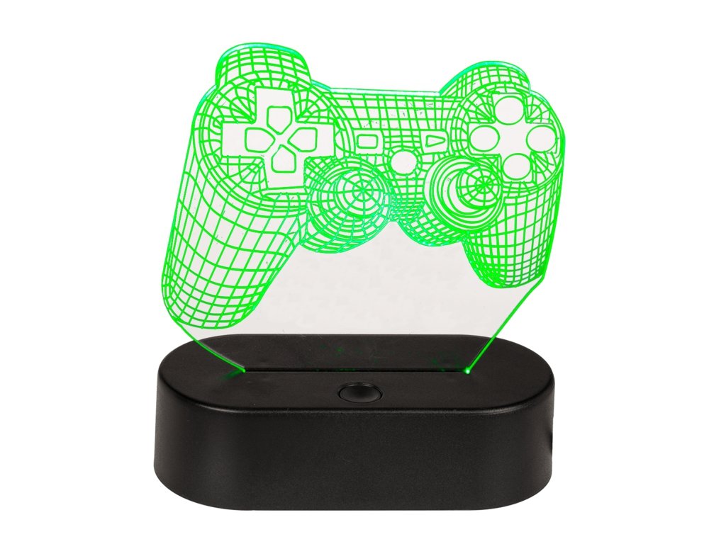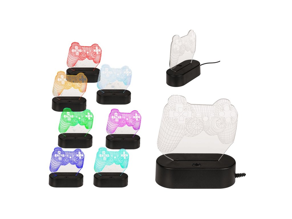 Lampička s designem herního ovladače postupně mění barvy, lze vybrat i jedna konkrétní barva. Stiskem tlačítka se přepíná 7 barev a 1 režim je automatický, kdy se barvy postupně prolínají.
