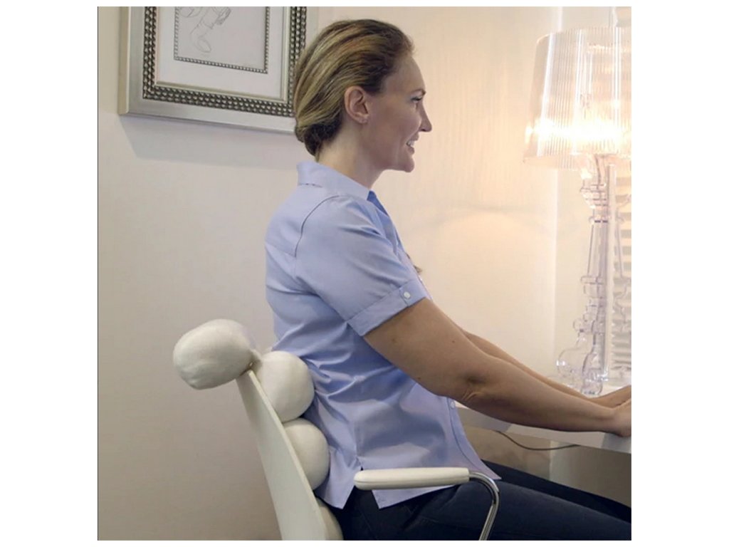 Díky svému tvaru jej snadno zavěsíte na opěradlo židle nebo křesla. Polštář je výborným řešením pro podporu bederní a krční páteře při sezení i ležení.