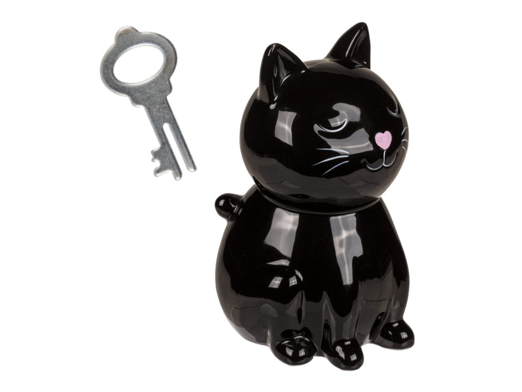 Krásná keramická pokladnička a dekorace v podobě roztomilé černé kočky. Perfektní dárek pro všechny holky, kluky a milovníky koček. Pokladnička je vhodná pro uložení mincí i bankovek.