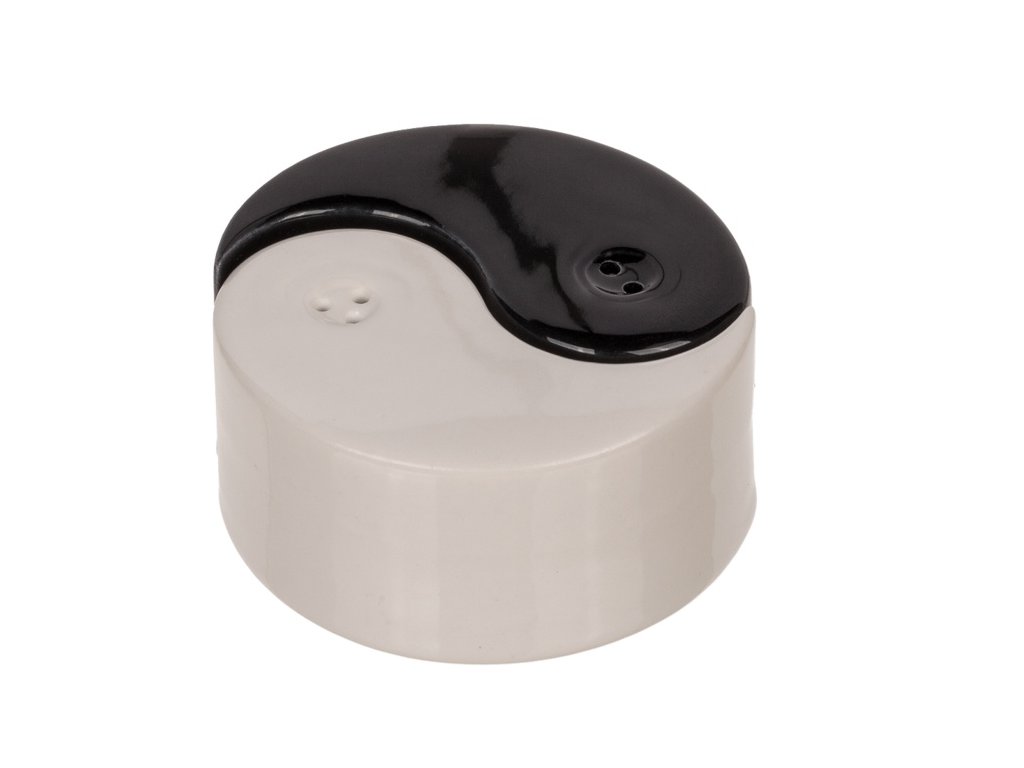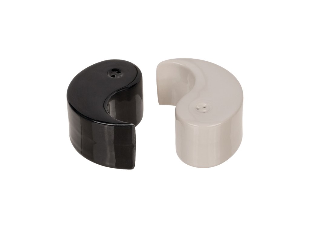 Keramická slánka a pepřenka ve stylu Jin Jang. Praktická a dekorativní sada se bude vyjímat na každém stole. Otvor pro plnění je ve spodní části.