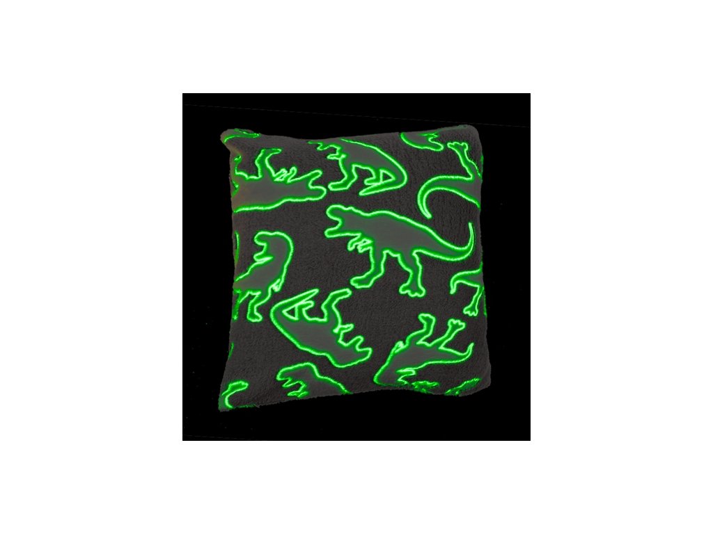 Tento dekorativní polštářek se vzorem dinosaurů skutečně svítí ve tmě. Velice příjemný, sametově hebký polštářek se stane zajímavým a originálním doplňkem do každého pokojíčku.