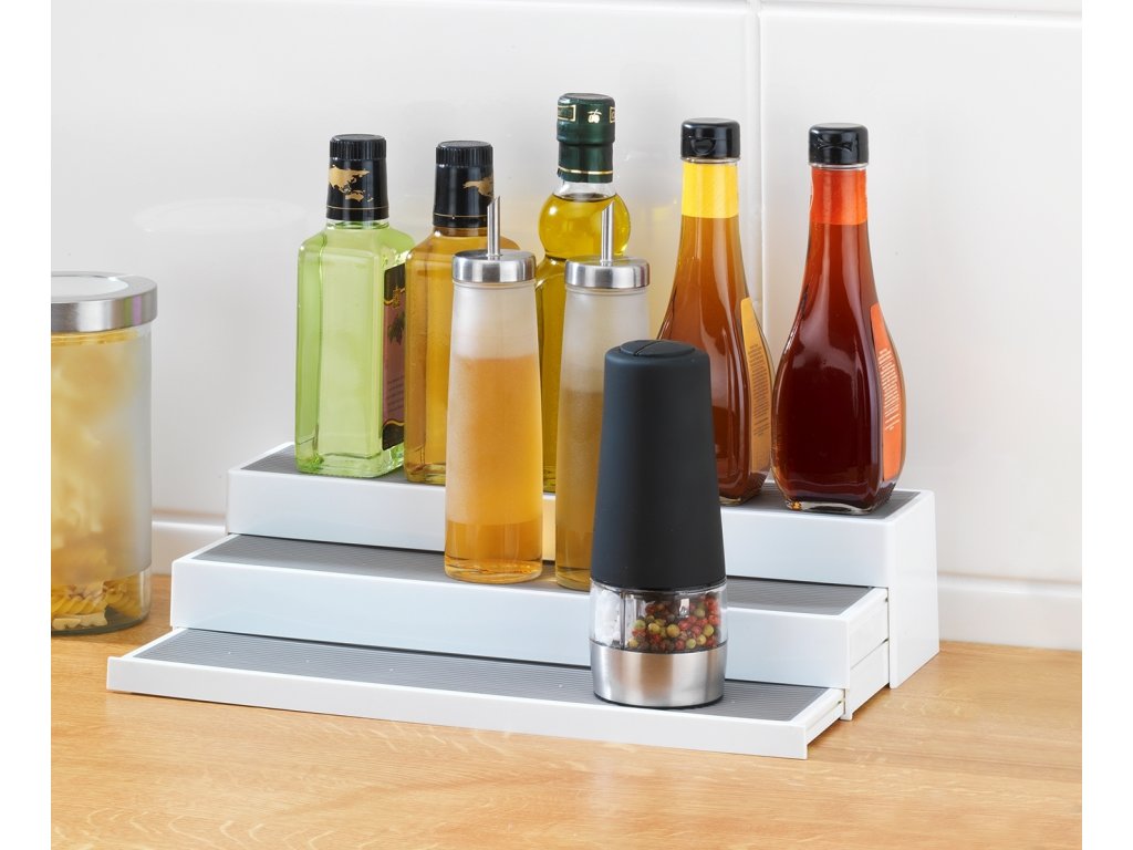 Ideální na kořenky, omáčky a jiná dochucovadla. Taktéž využitelný na léky, menší květináče s bylinkami, skleničky nebo jiné kuchyňské náčiní. Kvalitní vyhotovení, stabilní konstrukce.
