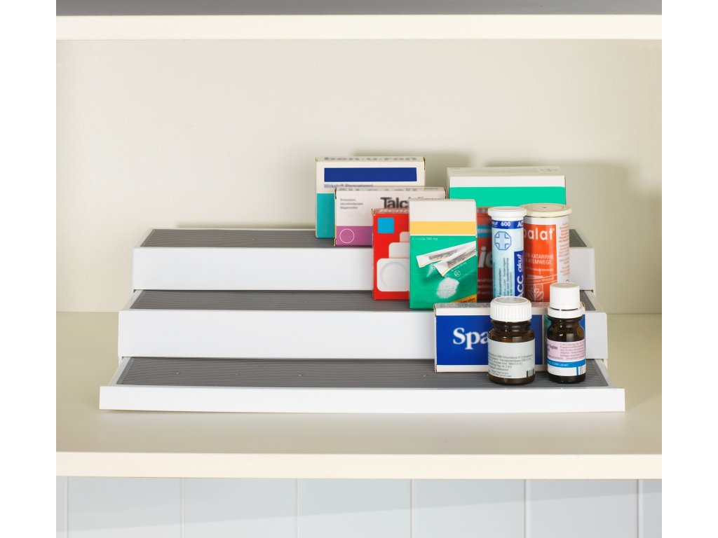 Lze libovolně roztáhnout, zda potřebujete pouze jednu, dvě nebo tři poličky. Jednotlivé schůdky mají protiskluzovou úpravu.